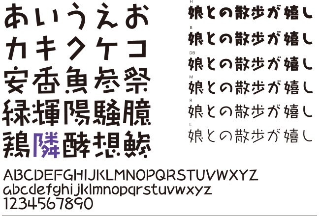 力強いタッチと手書きの程よい粗さが味わい深く、素朴な骨格が特徴的なアナログ感覚の書体
